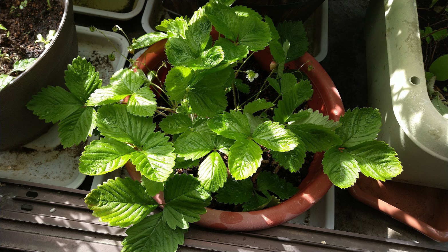 いちごも葉っぱが大きくなり、元気に茂っています。